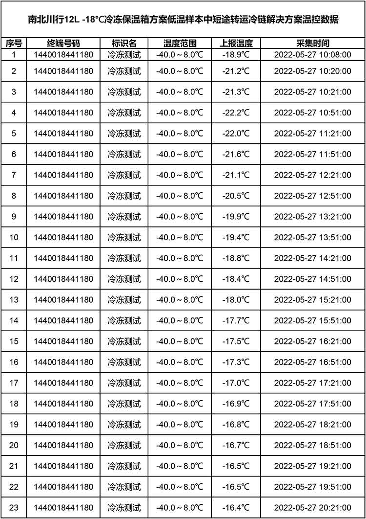 12L -18℃冷冻保温箱方案低温样本中短途转运冷链解决方案数据1